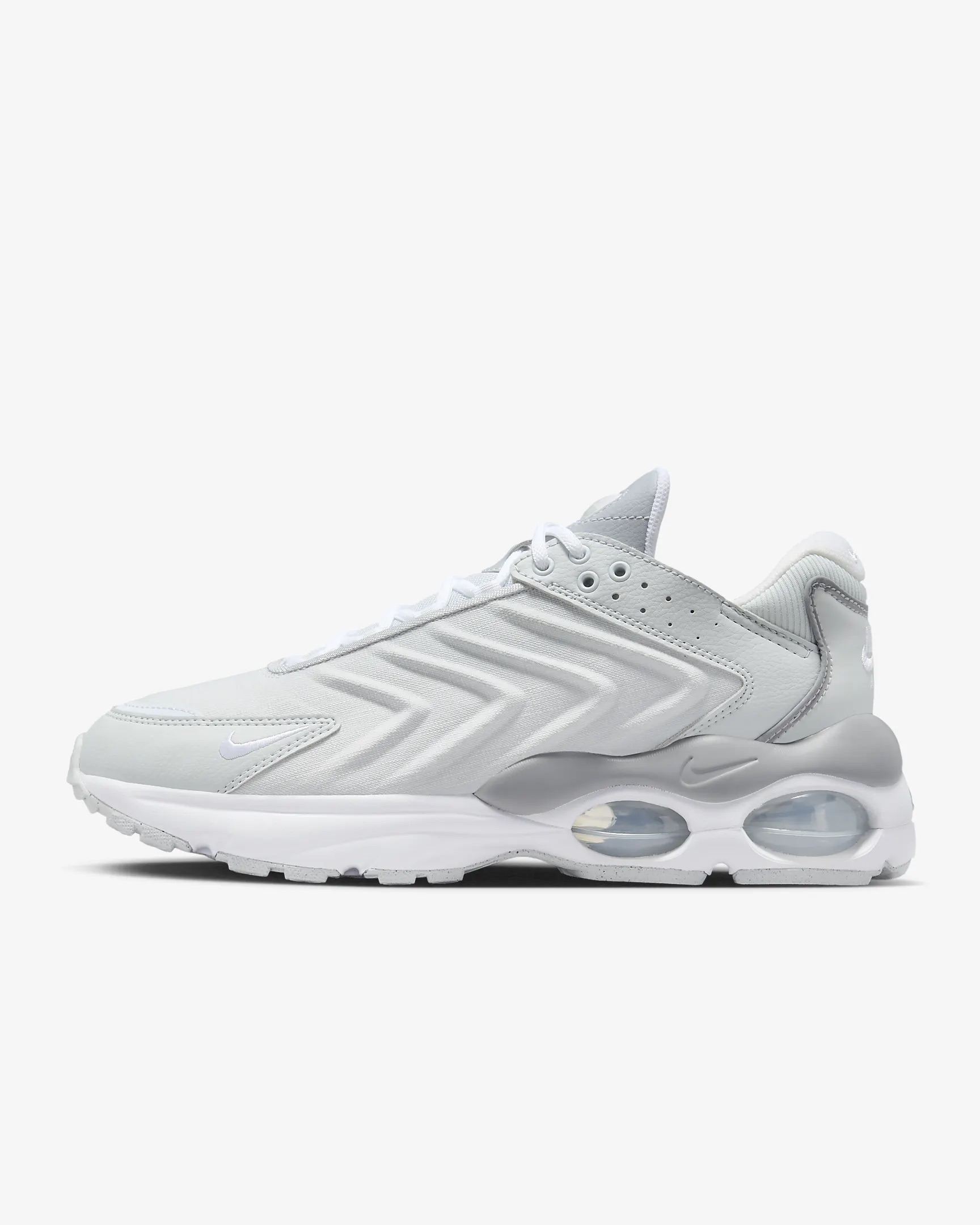 Ya te dejamos una review de las Air Max TW aquí mismo, así que ya sabemos de lo que estamos hablando. Estas Tail Wind con tonos grisáceos y blancos son unas zapatillas casi chunky pero muy ligeras que te van a encajar especialmente con tus pantalones más anchos.